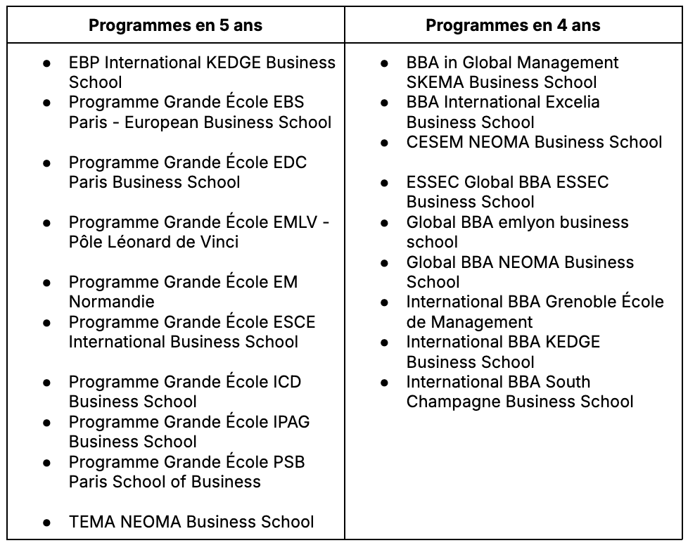 Ce concours permet de candidater aux trois grandes écoles de management suivantes :